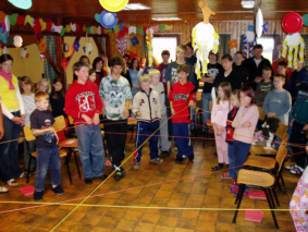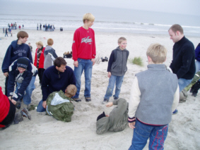 Die erste Nacht war für die meisten recht kurz, da es ja soviel zu erzählen gibt und alles interessanter als schlafen ist. Um 8:00 Uhr saßen schon alle am Frühstückstisch! Am Vormittag haben wir in den Dünen ein "Fahnenspiel" gespielt und uns danach am Strand ausgetobt. Einige mussten danach vor dem Mittagessen (Putengeschnetzeltes mit Ebly und Blumenkohl, sowie Mandarinencreme als Nachtisch) noch kurz unter die Dusche. Den Nachmittag verbrachten wir dann mit Völkerball, Fußball, Basketball und Volleyball. Vor dem Abendessen haben wir dann gemeinsam einen Wortgottesdienst gefeiert - mit "Laudato Si" in voller Länge natürlich. Obwohl ja erst Sonntag ist, standen am Abend dennoch die "Montagsmaler" auf dem Programm. |