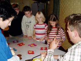 Nach dem Aufstehen (übrigens um 7:00 Uhr für das Betreuerteam) sah es gar nicht gut aus. Dunkele Wolken und Platzregen. Nach dem Frühstück klarte der Himmel aber auf und ermöglichte uns den geplanten Dorfgang nach Nes, wo die ersten Euro in mehr oder weniger sinnvolle Anschaffungen investiert wurden. Der nächste Schauer ließ sich dann auch Zeit bis zum Mittagessen (Pellkartoffeln, Kräuterquark, Möhrensalat und Wackelpudding). Am Nachmittag war das "große Lager" zur Lagerolympiade zu Gast. Am fast blauen Himmel konnten wir sogar einen Regenbogen bewundern. Nach dem Abendessen galt es dann im "Casino" das ausgeteilte Startkapital bei den unterschiedlichsten Spielen geschickt einzusetzen. Um 21:30 Uhr war dann Schluss für heute, für morgen hoffen wir auf weiterhin gutes Wetter... |