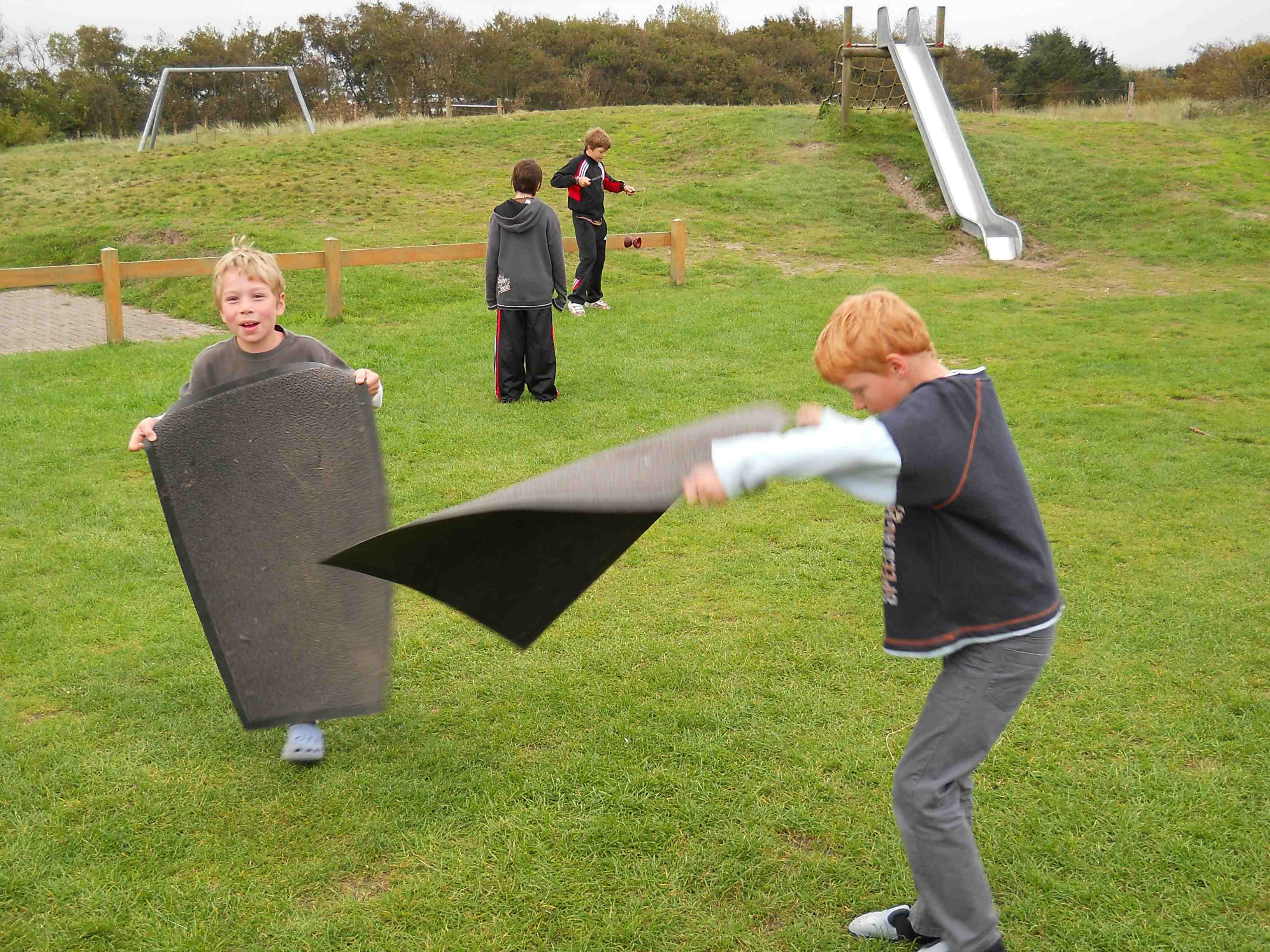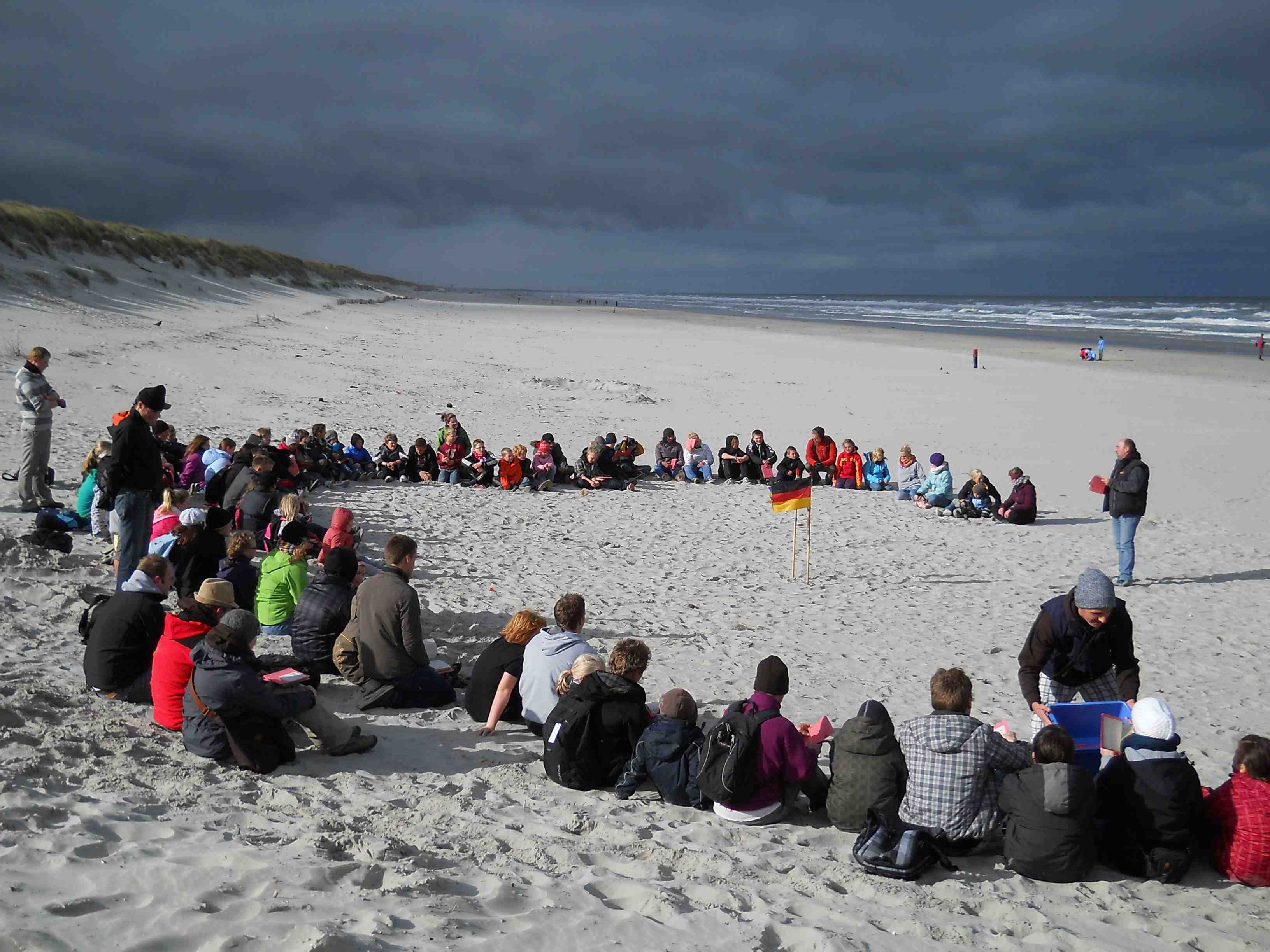 Heute kam Besuch aus Homberg, der auch eine besondere Überraschung für unseren Lagerleiter "im Gepäck" hatte. Da musste natürlich vorher noch einmal eine gründlich durchgewischt werden. Am Strand wurde dann der Wortgottesdienst gehalten - dabei schien sogar ein wenig die Sonne durch die heute sehr zahlreiche Wolken. Im Anschluß wurde gemeinsam mit dem großen Lager eine Lagerolympiade veranstaltet. Nach dem Mittagessen am Strand (HotDogs) ging es wieder zurück ins Lager. Die Herausforderung im Fußball gegen das grosse Lager nahmen wir gerne an mussten aber leider zum Schluß als Verlierer vom Platz. Der Abend endete mit dem Spiel 1,2 oder 3. |